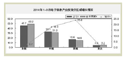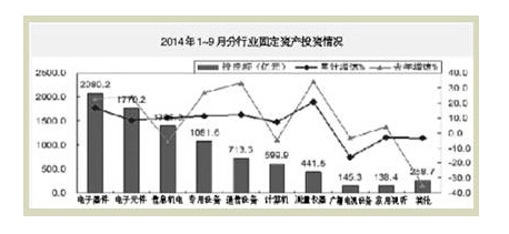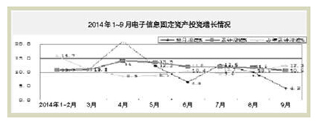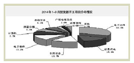 2014年1~9月,電子信息產(chǎn)業(yè)固定資產(chǎn)投資持續(xù)呈趨緩態(tài)勢(shì),電子器件行業(yè)投資持續(xù)回落,家用視聽(tīng)和信息材料等領(lǐng)域投資仍下滑,電子元件、計(jì)算機(jī)和通信行業(yè)投資增速放緩,新開(kāi)工項(xiàng)目依然不足。主要特點(diǎn)如下: