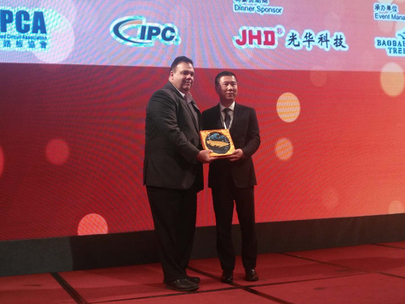 隨后,在HKPCA & IPC舉辦的歡迎晚宴上,董事副總裁鄭韌先生代表光華科技,接受了協會頒發的榮譽獎項。