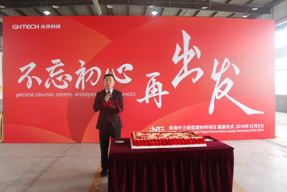 在熱烈的氣氛中,光華科技董事總裁鄭靭先生表達(dá)了公司對(duì)中力新能源項(xiàng)目的殷切期望,勉勵(lì)大家再接再厲,持續(xù)傳承老一輩光華人艱苦奮斗的精神,為光華科技新能源領(lǐng)域發(fā)展戰(zhàn)略目標(biāo)的實(shí)現(xiàn)而努力奮斗。
