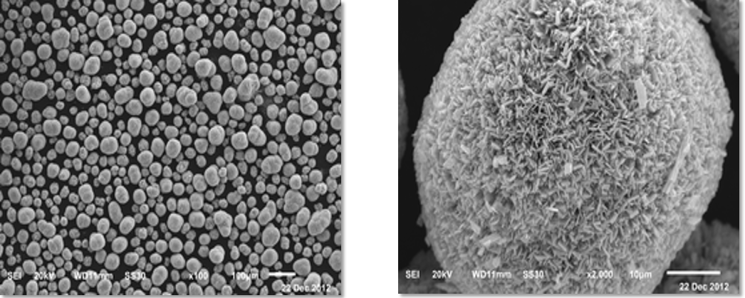 粒徑約40μm的規則球形顆粒,表面疏松復雜,獲得極大比表面積,因此大大增加了銅粉和鍍液的接觸面積