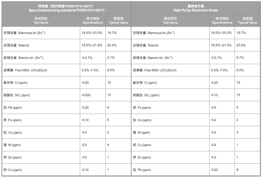 High tin content, low content of free acid and low content of organic impurities and metal impurities;