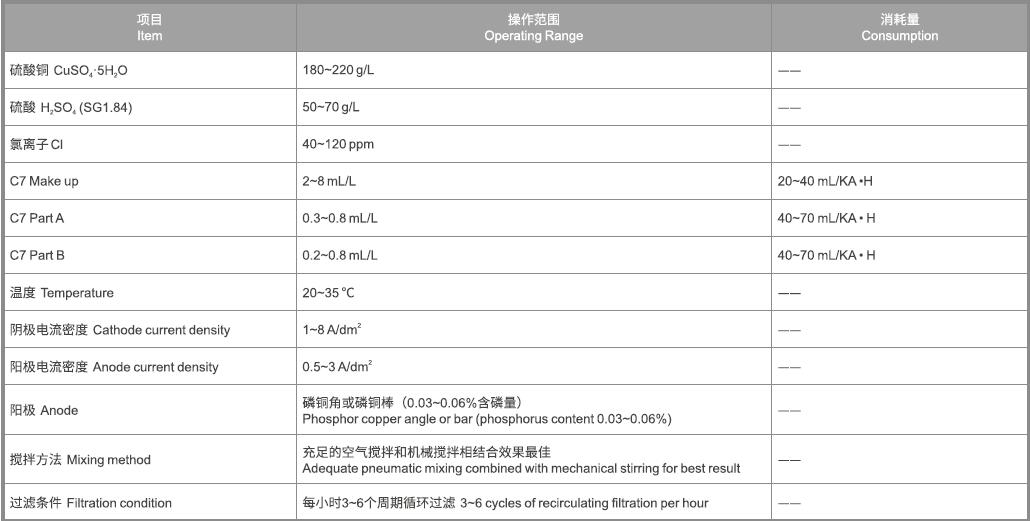 C7 Part B:起整平結晶細致的作用。當其含量過低時,只要A劑、開缸劑的含量適當,其出光速度快。當其含量過量時,只會提高鍍層整體填平和結晶更細致,出光速度仍能保持且不會出現"蒙沙"、低區暗啞等不良現象。
